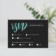 Elevate your wedding RSVP experience with our simple stylish black and white RSVP card. Featuring a chic design with bold and modern turquoise hand script against a sleek black background, this card exudes elegance and sophistication.