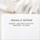Simple, stylish wedding return address label with couple's name and calligraphy ampersand in black, address line with last name of the bride and groom. Use this easy to customize elegant design template and make addressing envelopes a breeze © y.BEE WEDDINGS