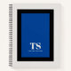 This colourful notebook design has classic design elements of a bold contrasting colour block geometric rectangular frame in vivid blue and black over an off-white background. A text template is included with monogram initials and name to personalize as you like. This look is stylish and sophisticated, yet simple and modern with a popular retro vibe and gender neutral appeal.
