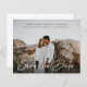 Budget Save the Date -- Modern smooth pen handwritten white script text. Completely versatile do-it-yourself style layout. The script text is flat image that cannot be edited, but it can be moved, resized, or rotated to align perfectly with your photo in advanced Customize mode. All other text elements can be fully edited. Works best for light mid-tone photo.  Other styles and sizes available in store.