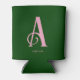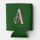 Simple Stylish Pink Monogram Initial on Dark Green Can Cooler