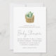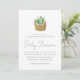 Natural potted botanical succulent plant with trendy hand lettered script baby shower invitation to honour the mother to be.