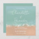 Simple, modern summer seaside beach wedding invitation. Modern seafoam and sand with a hint of blue art drawing