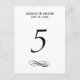 Guide you guests with these elegant wedding table cards. A simple swirl adorns these cards with a clear distinct number. Personalized the header with your names and wedding date. Input a table number and add one card to your cart. Go back and change the table number so you have one card for every table. The bulk discount still counts even though every card you purchase will bear a different number. There is no minimum so you can buy the exact amount you need for your big day.