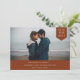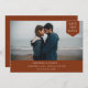 Simple traditional typography, photo tag, wedding save the date card. Design features, single horizontal photo, cream typography and dark desert sienna colour backgrounds.