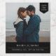 Simple traditional typography, photo tag, wedding save the date wine labels. Design features, single horizontal photo, white typography and black colour background.