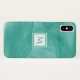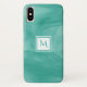 A simple subtle marble design Barely There iPhone X Case in teal green with a modern white square badge that you can personalize by adding your monogrammed initial to. This is part of the Arcadia Subtle Marble Monogram Collection.
