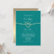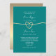 Simple, elegant, minimalist teal green wedding invitation with romantic faux gold rope heart and modern calligraphy script.