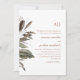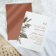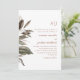 Simple and whimsical watercolor boho botanical greenery bouquet with monograms terracotta and white wedding invitation.