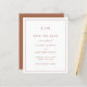 Simple budget save the date featuring a modern yet elegant design with your two letter monogram at the top and your wedding details surrounded by a thin border. All design elements are in terracotta / burnt orange / rust and may be changed in the design editing tool. A chic and stylish design that is great for a minimalist couple.