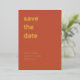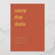 Simple Terracotta Enregistrer la date Foil Invitation, s'il vous plaît personnaliser le devant de la date Save the Date avec le nom du couple se mariant, la date du mariage et l'emplacement du mariage (ou autre libellé de votre choix), en utilisant le modèle de personnalisation en ligne avant de commander. Ce design Save the Date présente un beau texte en feuille métallique sur le devant, dans un style simple et minimaliste. L'arrière - plan pour l'avant de la carte est en terre cuite ; l'arrière de la carte est également en terre cuite. Cette conception est rapide et facile à personnaliser et peut être utilisée pour un mariage ou un autre type d'événement de célébration planifié comme l'anniversaire, l'anniversaire ou la réunion de famille.