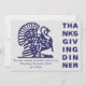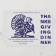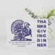 Simple Thanksgiving Dinner invitation, designed with a turkey graphic and bold THANKSGIVING typography in navy blue against a light silver grey background. On the reverse, there is CUSTOMIZABLE text, so you can create your own wording and add your name and details. Choose from a wide selection of Thanksgiving invitations, greeting cards and gifts designed by Berean Designs.