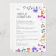 Elegant wildflower wedding reception menu card, featuring a modern wildflower border in vibrant tones over a neutral background. Designed with clean, minimalist typography, this card exudes understated sophistication while maintaining an energetic charm. ✦✦✦