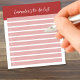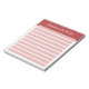 Simple, to do list notepad that has a customizable title at top, and lined numbers 1 - 10 down the left side. Top and lines in shades of red.