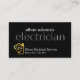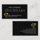 An all black cover features a translucent "electrician" signage near the centre of the card. At the top lies your prestigious name with a gold bulb home circuit logo you can use at the base alongside the business name and contact details.