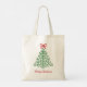 Modern Christmas tote bag featuring a simple and cute doodle of a Christmas tree with a bow along with the editable greeting "Merry Christmas".