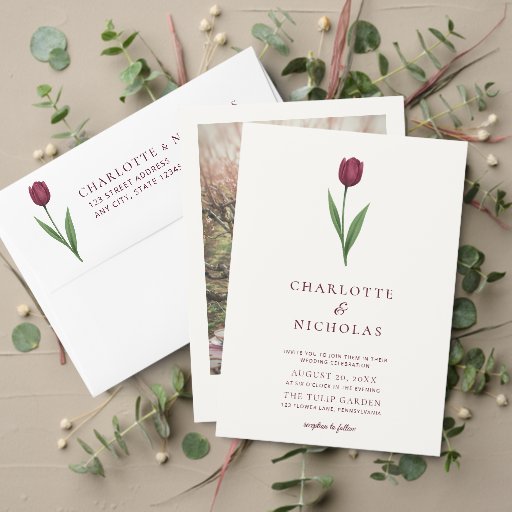 Simple Tulip Ivory Minimal Photo Wedding Invitation