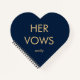 Simple Typography Custom Gold Navy Blue Her Vows Heart Shape. A simplistic, fully customiseable design with modern typography. Easily personalise the text, and you can also change the font style, size and colour, as well as the background colour if you wish.