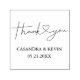 Modern and simple thank you stamp for your wedding featuring a hand lettered typography script that says "thank you" with a heart between the words. Customize this product by adding your names and event date.