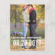 Modern Photo Save the Date Postcards. Bold white typography text overlay trendy design with your engagement date. Elke Clarke©. Replace sample with your own engagement photo. Add your wedding date, names and location. Use the prompts or select "customize it" for more editing options and to change colours of the text.