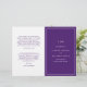 Programme de mariage plié simple avec un design moderne et élégant avec vos deux monogrammes initiaux avec vos détails entourés d'une fine bordure sur le capot avant. L'intérieur a votre fête de mariage sur le côté gauche et votre ordre de cérémonie sur le côté droit. Tous les éléments de conception sont en violet royal et blanc et peuvent être changés dans l'outil d'édition de conception. Un design chic et design qui conviendra à un couple minimaliste. Ces programmes de mariage bon marché sont imprimés sur des feuilles de papier pour une excellente option économique.