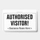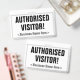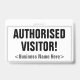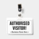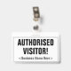 Cette conception de badge simple comporte le message "AUTHORIZED VISITOR!", ainsi qu'un nom de société personnalisable ou un autre message personnalisé. Il dispose également d'une frontière à trois lignes. Un badge comme celui-ci pourrait être utilisé pour indiquer qu'un visiteur ou un invité dans un lieu de travail est autorisé à y être. [~Z0000307]