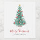 This modern and simple holiday wine label showcases a watercolor Christmas tree with red ornaments and the words "Merry Christmas" in stylish script typography. Personalize it with your family name.
