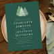 Simple Woodland Pine Evergreen Forest Wedding Invitation Watercolor Fir pine Trees on a Rich Emerald Green Background