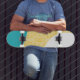 Simple Waves - Floral Pattern Turquoise and Yellow Skateboard