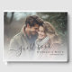 This design features an elegant wedding simple minimalist wedding guest book with calligraphy script, an elegant, trendy style perfect for engagement photo, with a simple, black and white lettering style, with happily ever after on the back.