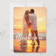 Simple Photo Wedding Thank You Flat Card with White Handwriting Script Overlay in a vertical design. Elke Clarke © Send out your wedding thank you message as newly weds to your friends and family using this elegant, memorable, simple thank you wedding photo flat card with the words "thank you" written in a white handwriting typography script text overlay. Easily replace the sample photo with your own wedding photo. Add your personal thank you message on the back or leave it blank and hand write your message in person. Other colours available
