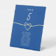 Elegant, simple, minimal blue wedding cards and gifts tabletop sign with gold rope heart and modern calligraphy script.