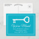 Simple White Blue Minimal Key Moving Announcement Postcard