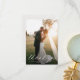 A modern photo card design with white calligraphy and a custom photo, thank you message to your guests.