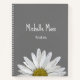 Simple botanical personalized notebook, with a white daisy design on a gray background. The back has a gray background to accent the front, With white typography lettering, you can customize with your own information. Great for taking notes for your business!