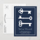 Simple White Navy Minimal Key Moving Announcement Postcard