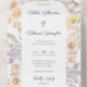 This All-in-One wedding invitation embraces the timeless allure of a pastel country wildflower frame that gracefully adorns the invitation. The gentle hues of lavender, beige, gold, and soft greens create a dreamy atmosphere, symbolizing the natural beauty of your love story. The All-in-One wedding invitations are both beautiful and practical by combining the wedding invitation with an easy to remove perforated RSVP postcard. They are also quick and easy to prepare for mailing. Simply address the invitation, fold the back flap and seal with the included clear stickers. Once your guests receive the pre-addressed invitation they simply tear off the perforated RSVP card and drop it in the mail. The addition of the QR code allows your guests to easily access your wedding website for information including reception details and dinner choices!