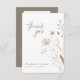 A simple wildflower wedding photo thank you card. This wedding thank you features a boho floral wildflower theme with neutral brown, tan and sage green earth tones. Add a wedding photo and customize the text to create your own special thank you message for your wedding guests.
