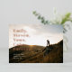 Simple and bold raised foil text on white features a list of the wedding basics: you, your beloved, wedding vows, cake and your future forever, making this save the date card a modern way to send your big news to family and friends. Easy to customize text accommodates the wedding date and location with space to add more text on the back like wedding website url and even more engagement photos.