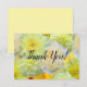 Versatile flat or folded thank you card for post-wedding gratitude, featuring a vibrant, happy design of yellow and cream watercolor flowers. Designed to match the elegant arched invitation, it is a simple, beautiful addition to the full collection (Invitation, RSVP, Save The Date, and Blank Note Card). Blank on the back or inside for a personal, handwritten message.