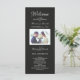 The Customize menu can also be used to change the colour of the font and background to suit your wedding colour scheme. Trendy and chic yet elegant and timeless - coordinates beautifully with so many of today's wedding styles. Shown in a black and white theme with a black linen cloth background but can be customized to your wedding colours for the text and background.