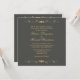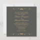 Le défilement doré accentue l'avant et l'arrière avec le texte correspondant. Gravel (gris vert) et ce solide look simple est fantastique pour un mariage en soirée ou en hiver. Placez les prénoms de la Mariée et de la Salle avec la date du mariage d'un côté, donnant à vos invitations une sensation moins formelle. De l'autre côté, l'information pertinente du mariage ajoute une touche classique. Code hexadécimal #4A4B46 Lorsque vous faites vos invitations triple vérifier toutes vos orthographes et dates.