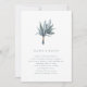 Cette invitation de mariage simple et élégante comprend une simple bande d'eucalyptus aquarelle, sur un arrière - plan blanc propre pour un look minimaliste étonnant. Le fond de l'invitation est d'une couleur douce, bleu-gris.