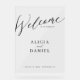 Noir minimaliste moderne noir et blanc mariage marié et noms de mariés personnalisés acrylique transparent signe d'accueil avec un script de calligraphie manuscrit moderne. ++++++++++++++++++++ Convient à toutes les saisons mariages tendance et tendance.