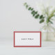 A simple business card with a Red and White graphic frame, with a white background and black print. Customized details that you'll want to include are on the reverse side, which also has the Red and White frame, a white background and black print.