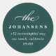 Simple and elegant 1.5" return address stickers feature your return address in white lettering on a rich forest green background, accented with flourished calligraphy script. Designed to match our Simplicity holiday card collection.