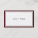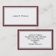 A simple business card with a Burgundy Wine and White graphic frame, with a white background and black print. Customized details that you'll want to include are on the reverse side, which also has the Burgundy Wine and White frame, a white background and black print.