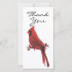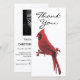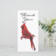 Modern funeral thank you card featuring a striking red watercolor cardinal sittng on a tree branch with the text 'thankyou', and on the back is a personalized sympathy appreciation template with a photo.