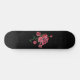 a traditional watercolor artwork of red roses with green stems and leaves on a black coloured skateboard.