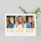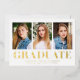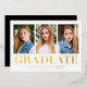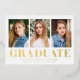 Célébrez la réussite de votre diplômé avec ce faire-part de graduation moderne et élégant, avec trois photos personnelles encadrées de blanc immaculé avec "Graduate" affichées en gras feuille d'or. Cette élégante faire-part de graduation multi-photo vous permet de customiser le front avec le nom du diplômé, le nom de l'école et l'année de graduation pour une touche personnalisée. Parfait pour les diplômés du lycée et du collège, ce faire-part de graduation en feuille d'or ajoute une brillance sophistiquée à votre grand faire-part, ce qui en fait un souvenir à chérir pour les années à venir.